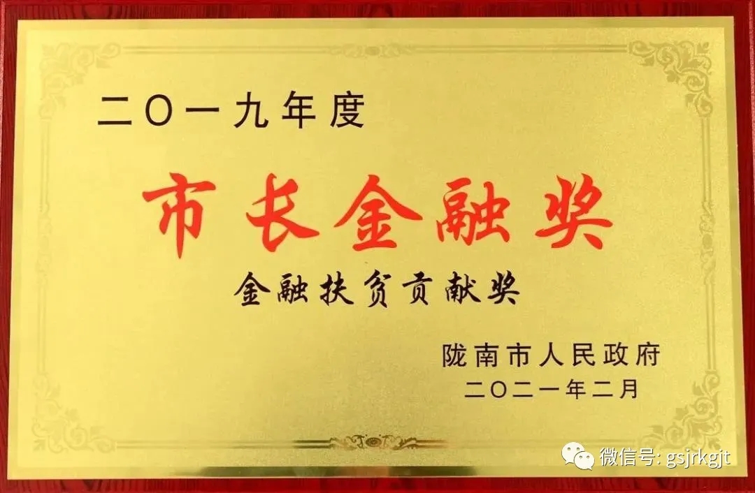 薛小勇授予金控隴南擔(dān)?!?019年度市長金融獎”